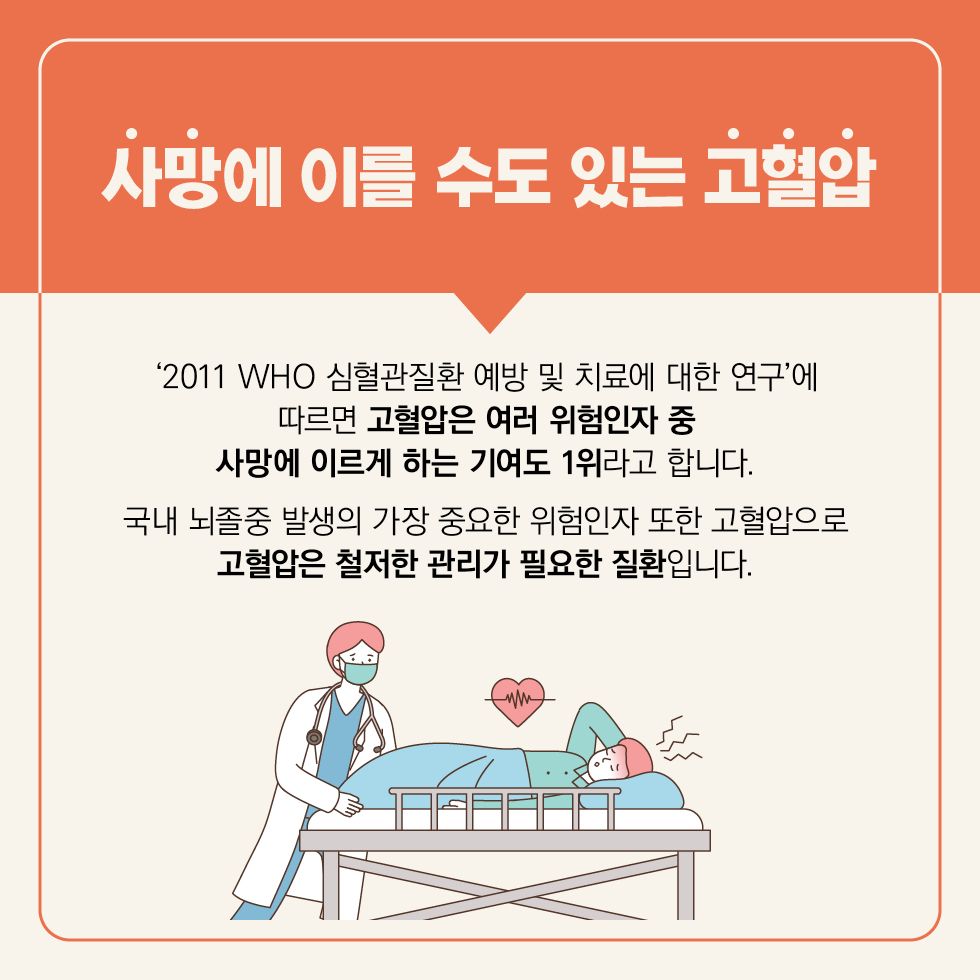 - 가족 중 고혈압 환자가 있을 경우, 발생 위험이 높아짐