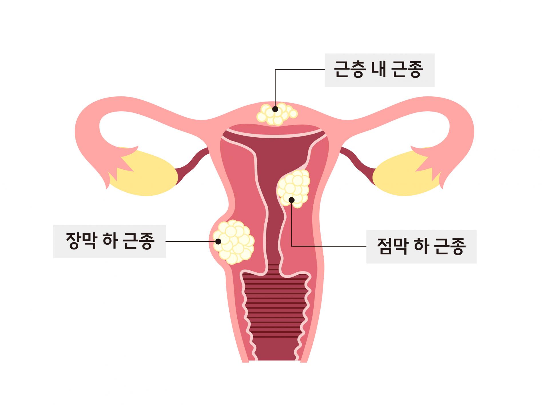 | 점막하 근종 | 자궁 내막 쪽에 생겨 출혈이 심해질 수 있습니다. |
