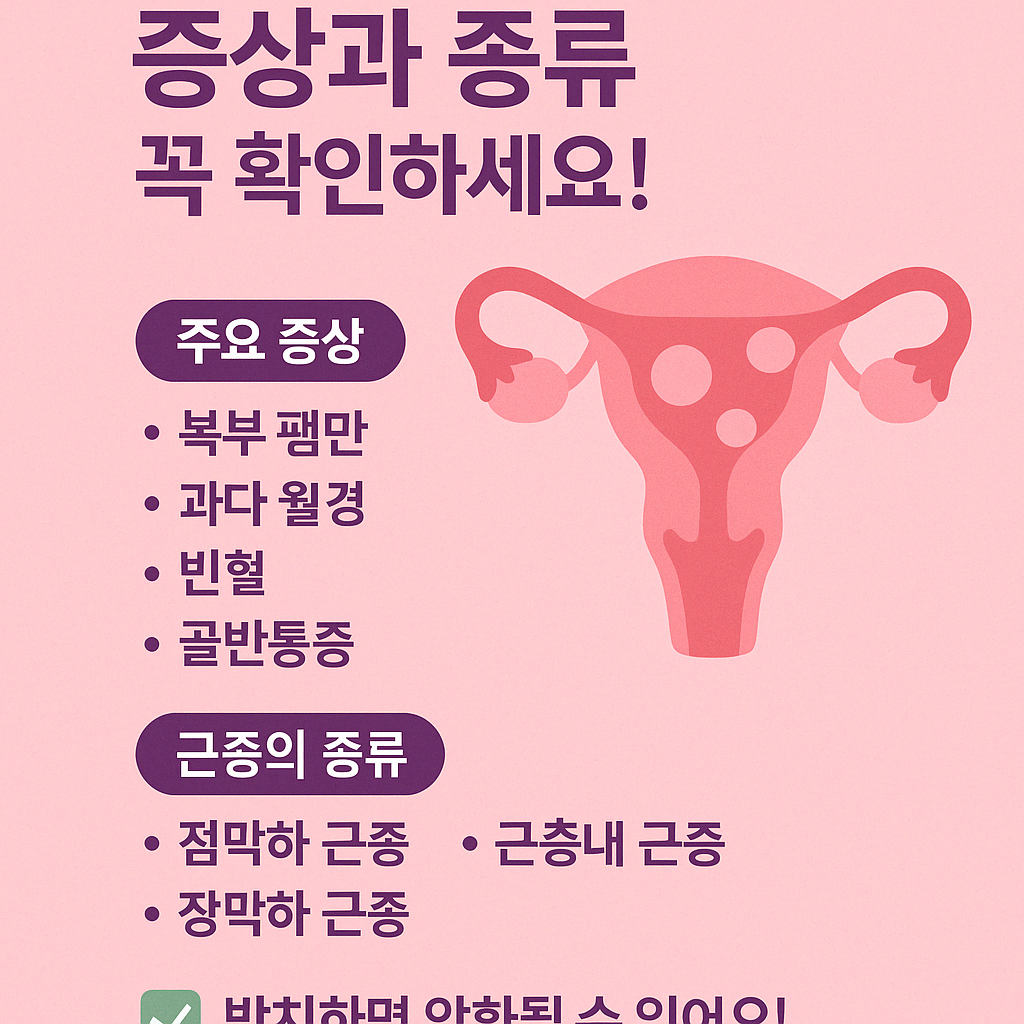| 장막하 근종 | 자궁 바깥쪽 장막에 생기며, 크기가 커져 복부 팽만을 유발할 수 있습니다. |